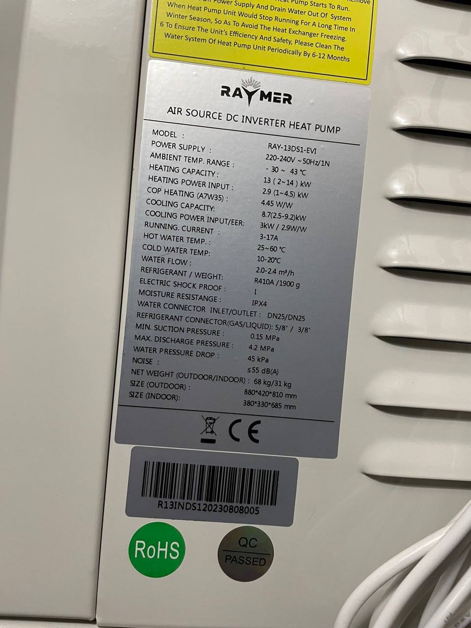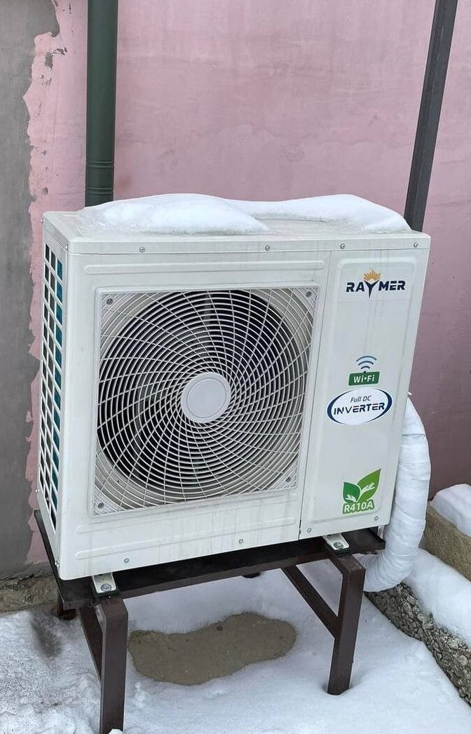 Для решения этой задачи был выбран сплит тепловой насос воздух-вода Raymer RAY 13DS1 EVI на 13 кВт. Этот выбор был обусловлен несколькими ключевыми характеристиками насоса: