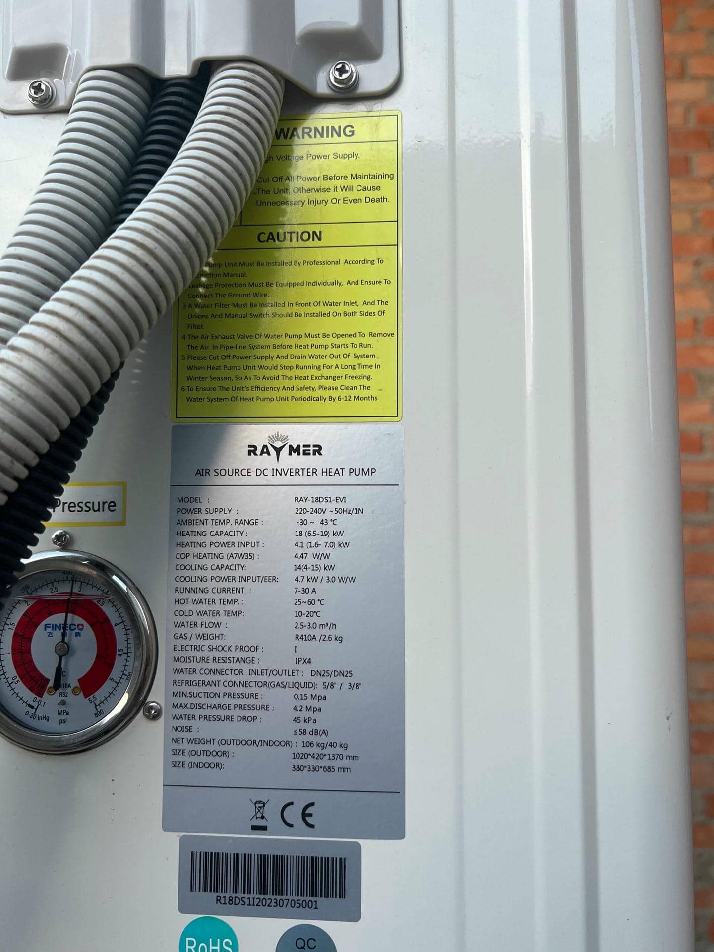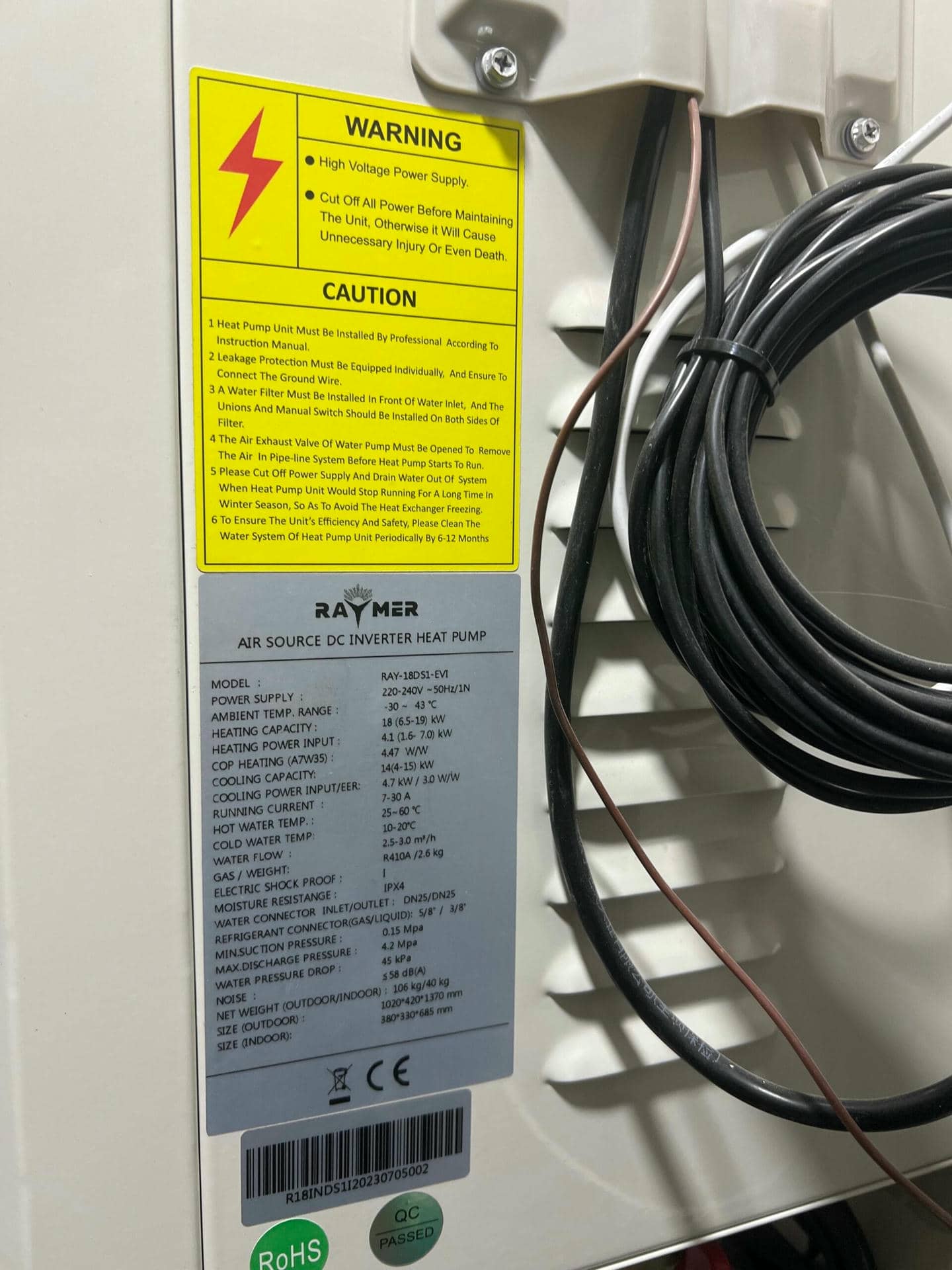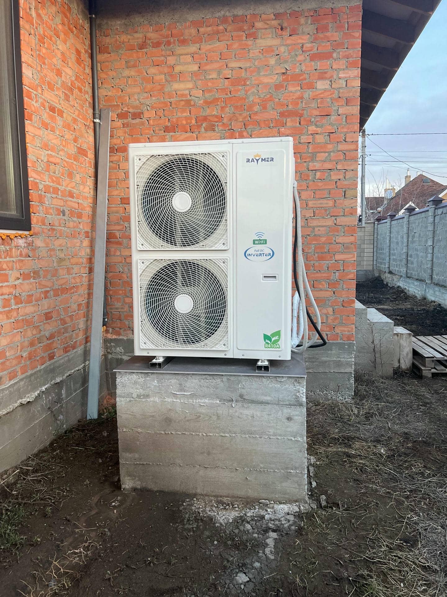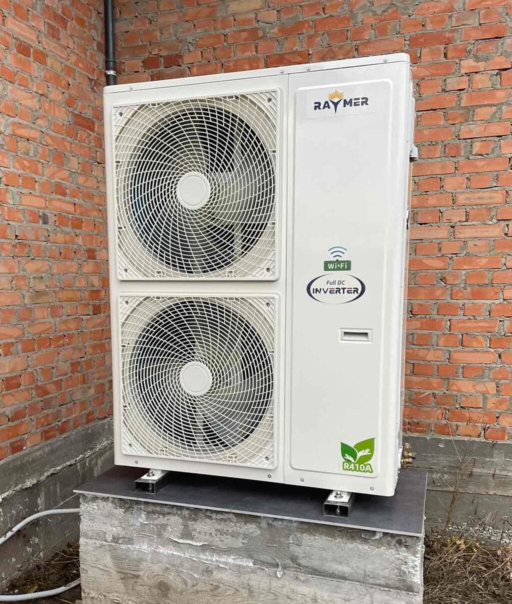 1. Установка теплового насоса: Мы начали работу с установки сплит-системы теплового насоса воздух-вода Raymer RAY-18DS1 EVI на 18 кВт. Этот этап включал в себя выбор оптимального места для наружного блока, монтаж его крепления и подключение к внутреннему блоку, расположенному внутри помещения.