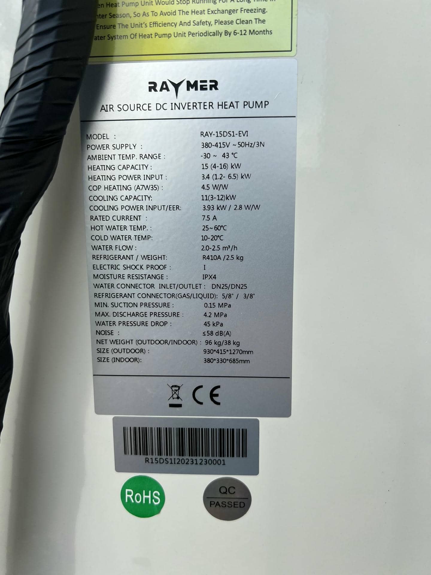 Тепловой насос Raymer RAY-15DS1-EVI 380V 15 кВт сплит-система, отличается высокой надежностью и долговечностью. Современные технологии и качественные материалы обеспечивают долгий срок службы оборудования.