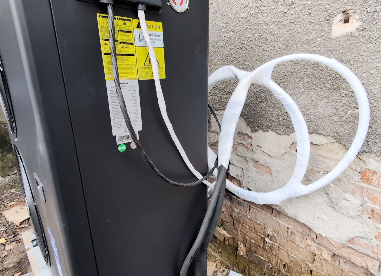 Фреонова магістраль між зовнішнім і внутрішнім блоком має довжину приблизно 12 метрів. Для забезпечення необхідного об’єму фреону і компенсації температурних розширень магістраль акуратно скручена у “бублик” — технологічне рішення, яке дозволяє зменшити вібраційне навантаження та підтримувати стабільний тиск у контурі.