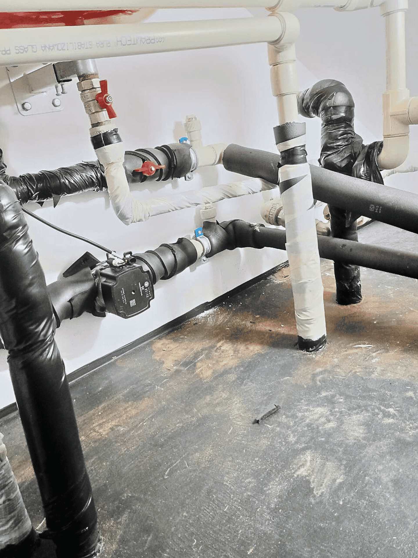 - Прокладка фреонових труб: Для підключення теплового насоса до системи були прокладені фреонові труби, що забезпечують надійну та ефективну роботу.