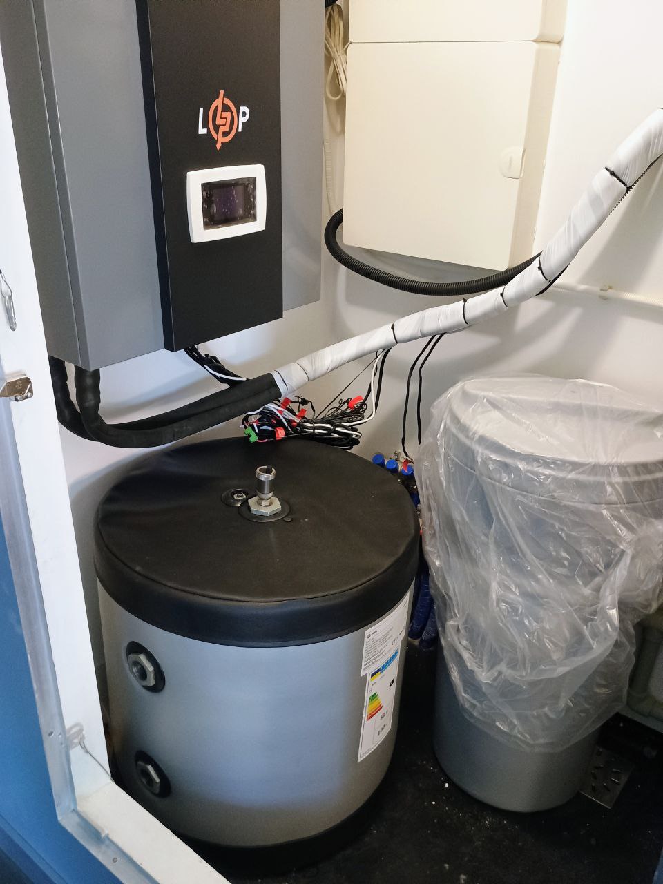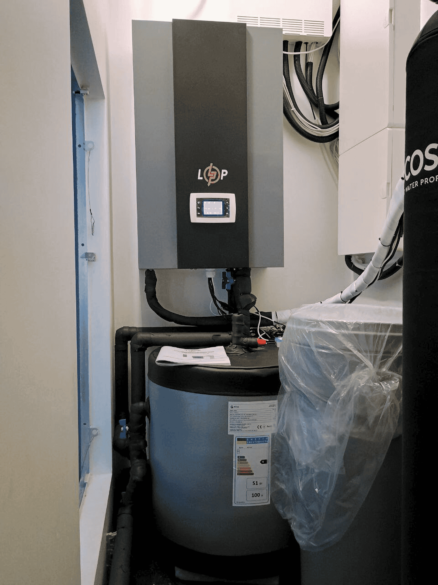 - Оптимізація роботи ГВП : Простір під котельнею було перероблено для забезпечення оптимальної роботи системи гарячого водопостачання та опалення. Газовий котел Ariston був залишений у системі, але його роботу тепер доповнено та оптимізовано новим тепловим насосом.