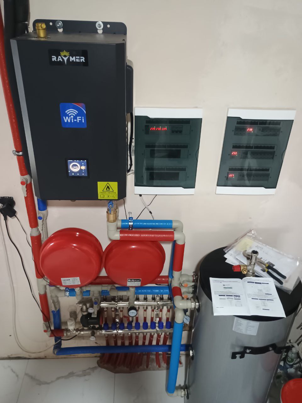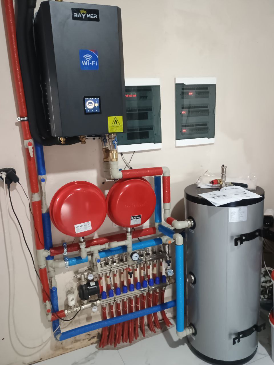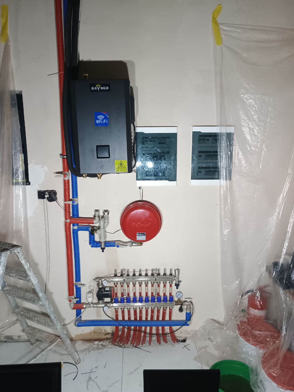 Внутрішній блок теплового насоса Raymer було встановлено на місці старого електрокотла, який вирішили повністю демонтувати й не залишати в системі. Це дало змогу оптимізувати простір та побудувати нову гідравлічну схему без зайвих елементів.