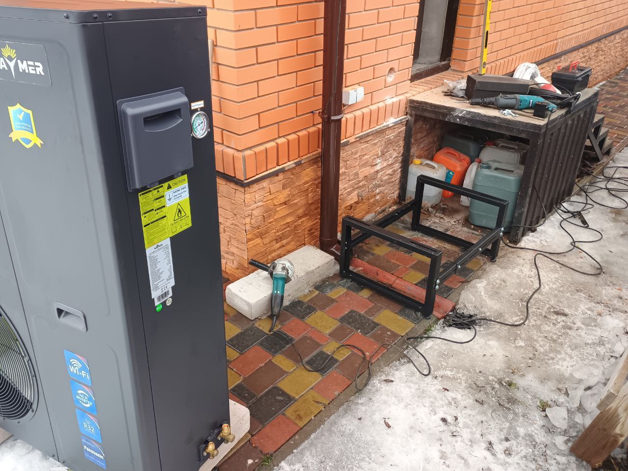 Перший етап робіт був присвячений правильному розміщенню та надійній фіксації зовнішнього модуля теплового насоса повітря-вода Raymer RAY-18DS2-EVI. Від якості виконання цих робіт безпосередньо залежить ефективність та довговічність всієї системи.