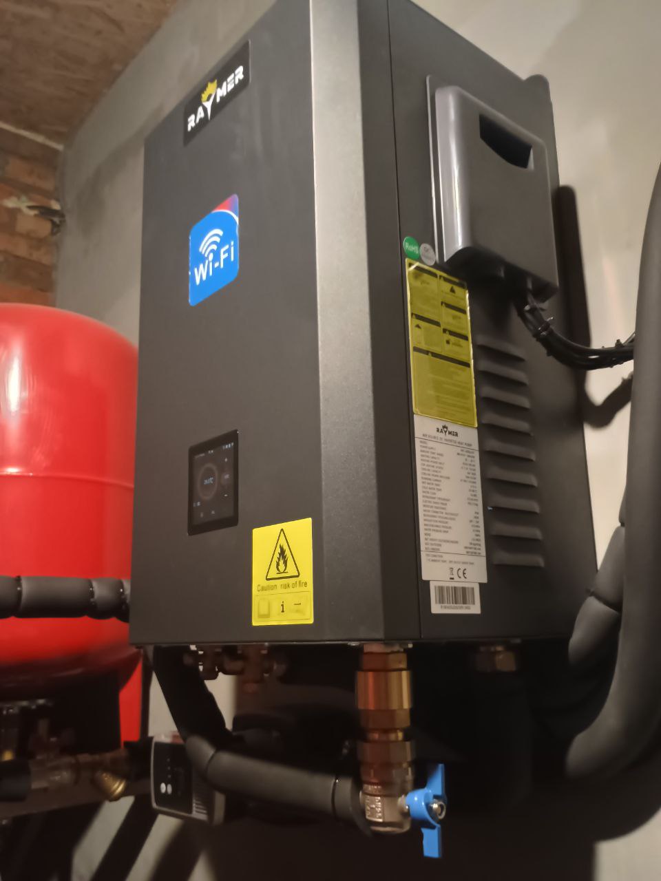 Стратегічне розміщення гідромодуля: Внутрішній блок теплового насоса Raymer було встановлено безпосередньо біля входу в котельню. Таке рішення забезпечує власнику максимально зручний доступ до панелі керування для моніторингу показників обладнання та оперативного регулювання температури в будинку.