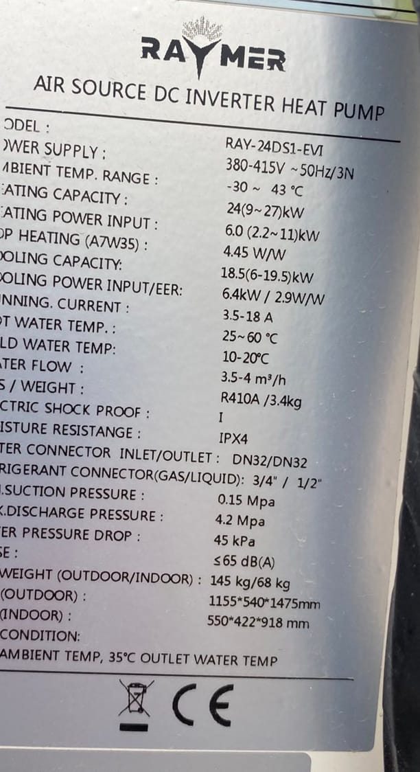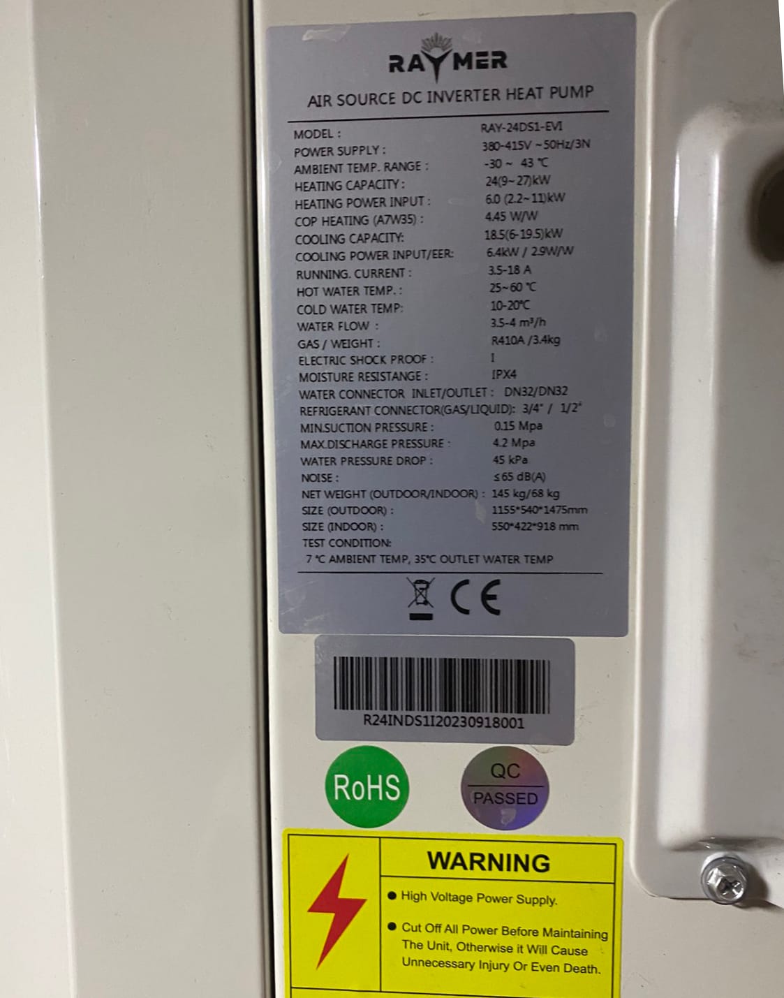 Після ретельного аналізу поточної системи опалення та рівня теплоізоляції будинку було вирішено встановити тепловий насос Raymer RAY-24DS1-EVI потужністю 24 кВт.