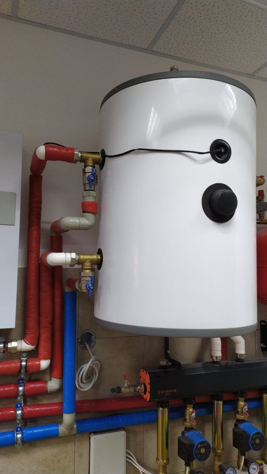 Установка буферного бака: Для забезпечення стабільності та ефективності роботи системи було встановлено буферний бак на 120 літрів. Цей резервуар виконує функцію гідроакумулятора, забезпечуючи рівномірний розподіл тепла та стабільний тиск у системі.