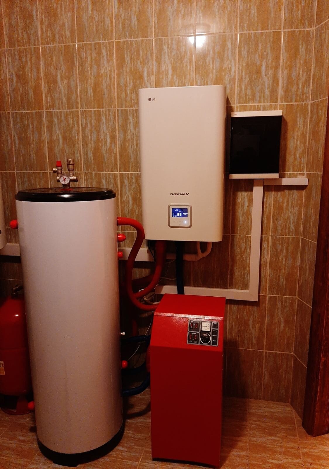 Підбір та встановлення теплового насоса: Здійснення вибору та придбання теплового насоса LG Therma V Series IV – HU163MA.U33/HN1639.NK3, що відповідає необхідним характеристикам і потужності. Встановлення насоса згідно з інструкцією виробника, включно з підключенням до електрики і перевіркою його роботи.
