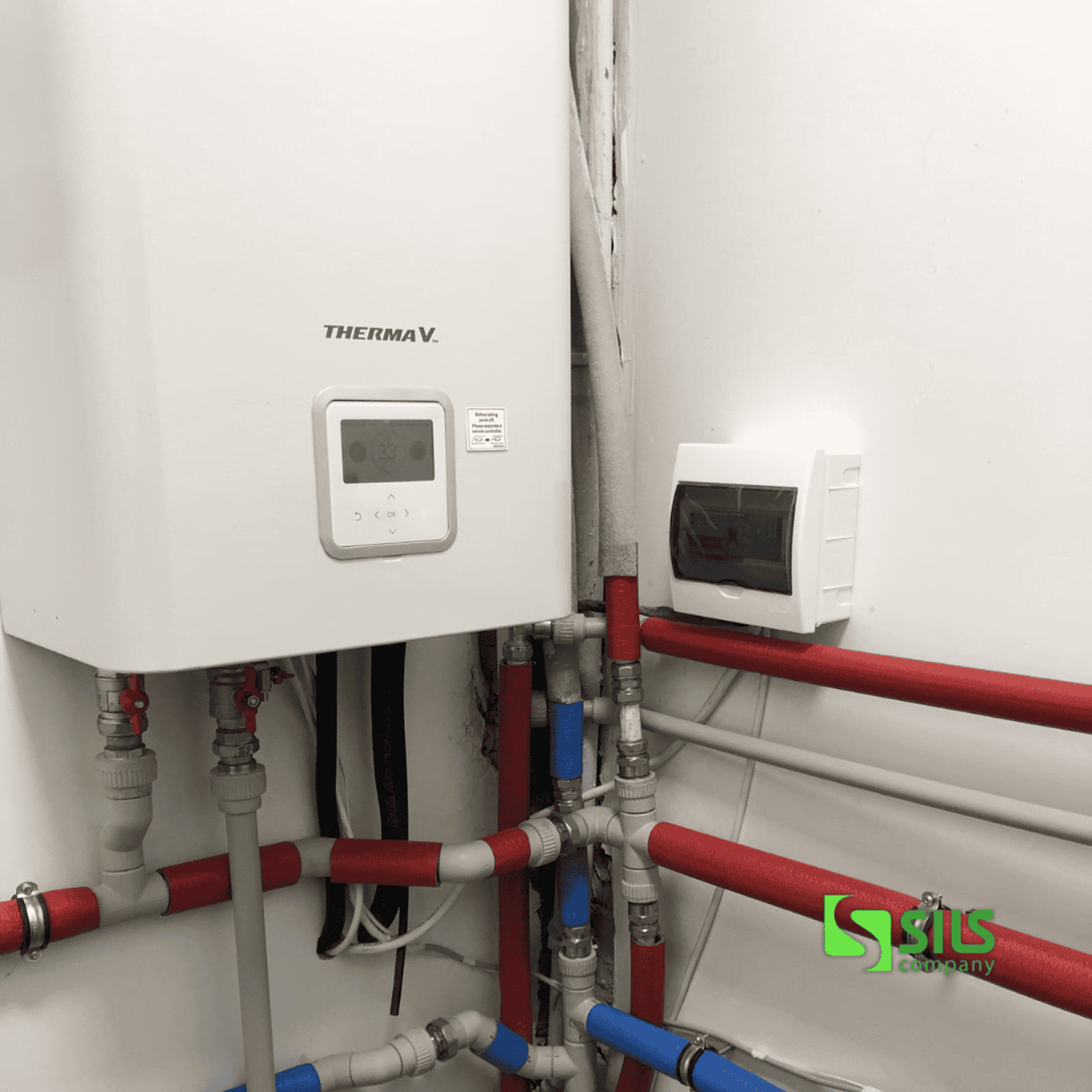 Підключення до системи опалення: Тепловий насос інтегровано з наявною системою опалення будинку через бак-накопичувач об’ємом 200 літрів.